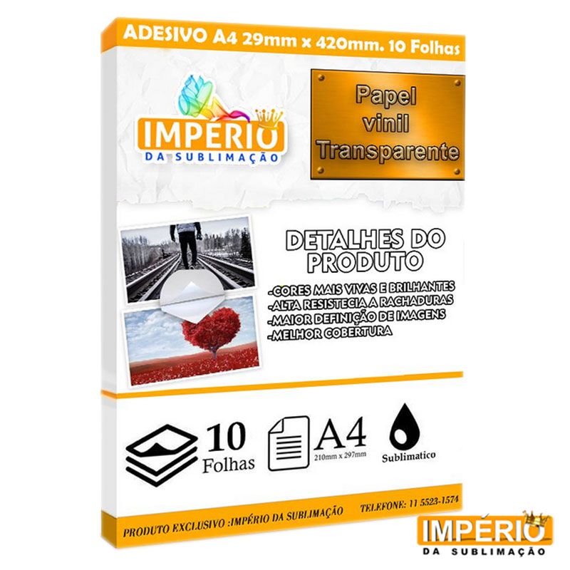 Papel Vinil Transparente para Sublimação, um produto excelente para sua estamparia com qualidade incomparável, curvas delineadas e acabamento superior.